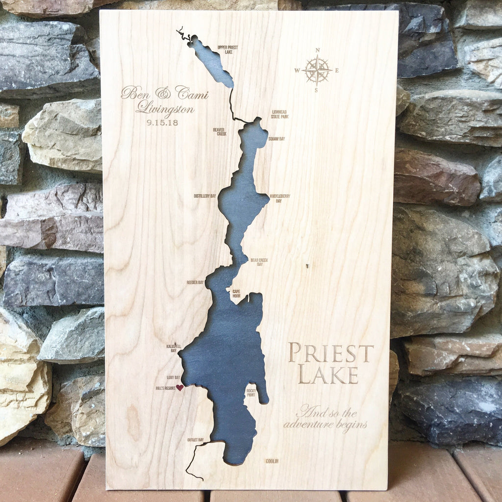 Priest Lake, Idaho Custom Engraved 3 D Wood Map Wall Hanging