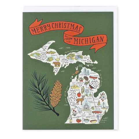Illustrated Michigan Map Card Merry Christmas โ City Bird
